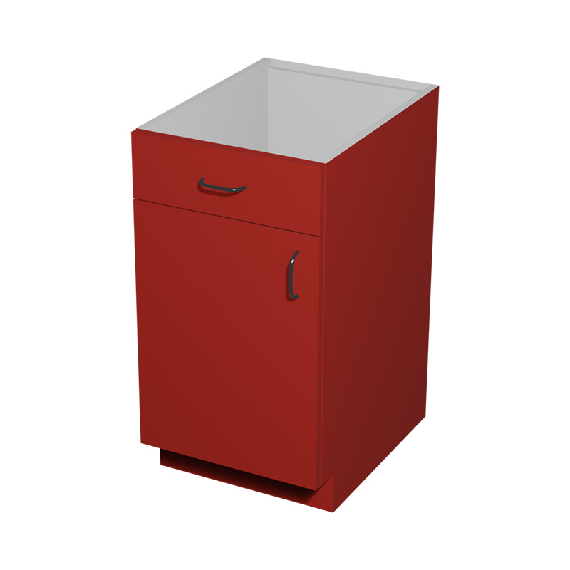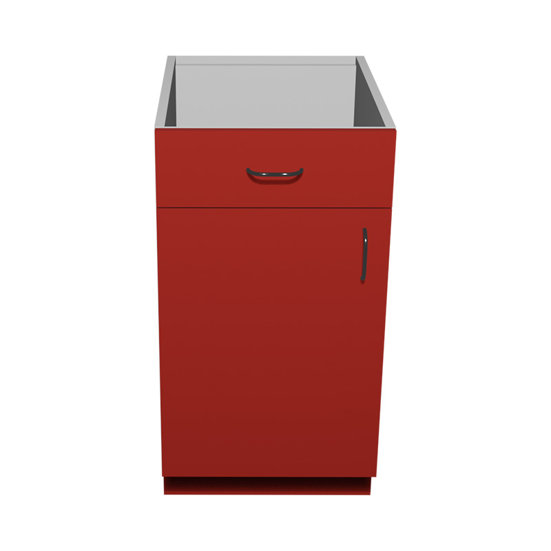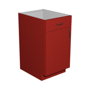 B18 – 18″W x 24″D x 34.5″H Red Acrylic Glossy, Base Cabinet 1 Door, 1 Drawer, Plain Modern Frameless, Ready to Assemble